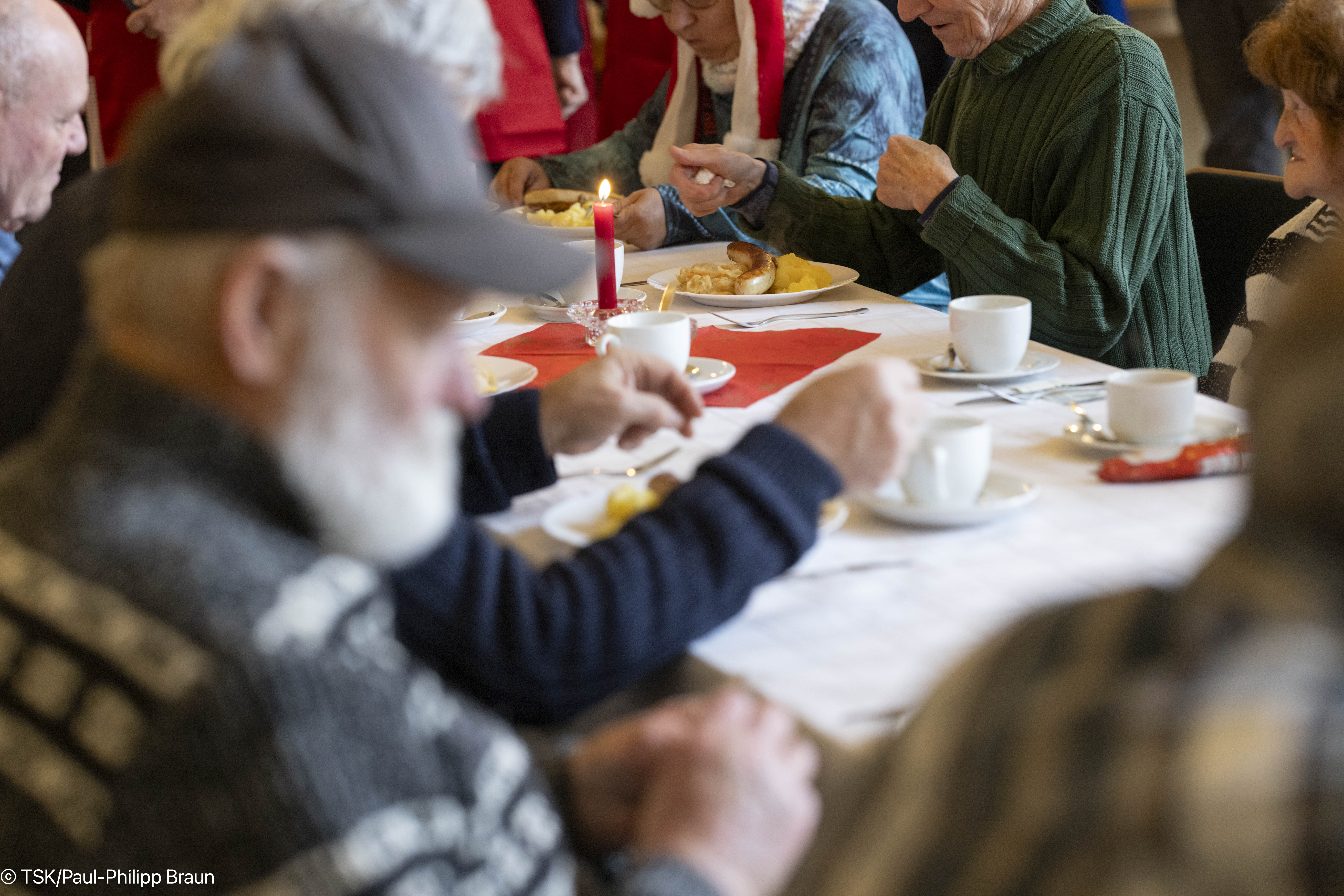 Für viele Gäste war es ein Wiedersehen, untermalt mit Kulturprogramm. „Viele können es sich vielleicht nicht leisten, ins Theater zu gehen oder haben vielleicht auch keinen großen Freundeskreis. Dann trifft man sich eben hier“, sagt Petra Hegt. „Das gehört doch auch zur Stadtmission. Auf die Begegnung kommt es doch an.“Wichtig sei nicht nur das Essen, sondern auch die Zeit, die man miteinander verbringe.
